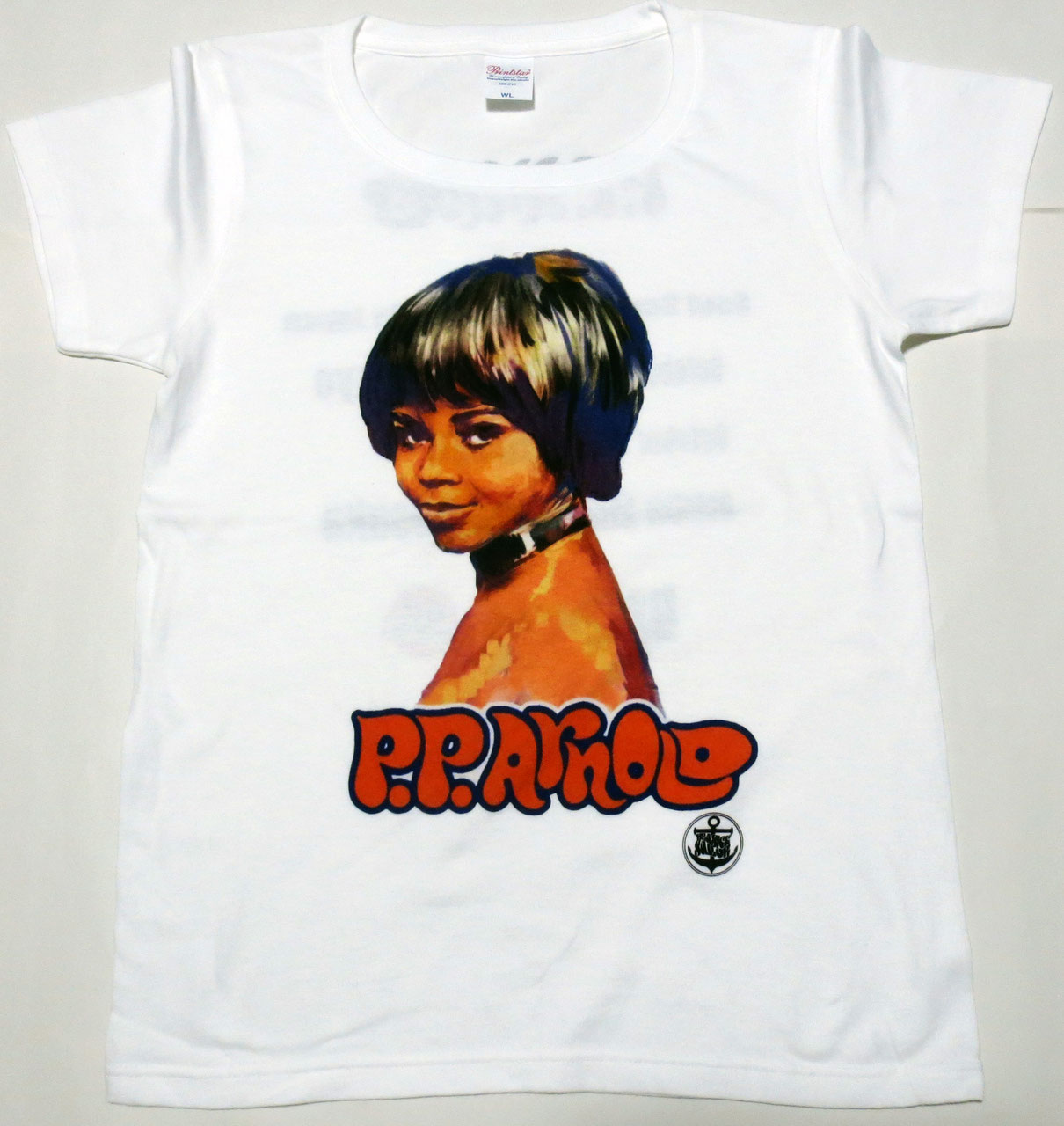 P・P・アーノルド日本限定公式ツアーレディースTシャツ。フロントは60'sスタイルのイラストとP・P・アーノルドロゴ、バックには日本公演ツアーデータをそれぞれプリント。ボディはレッド(左)とホワイト(右)の2種類。